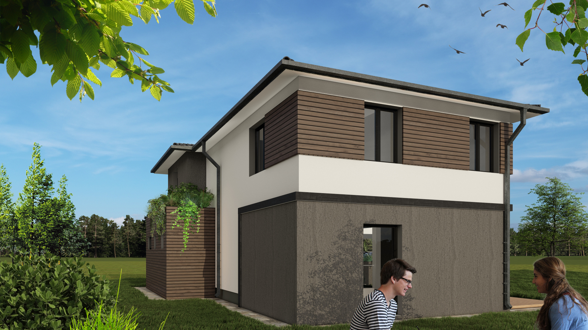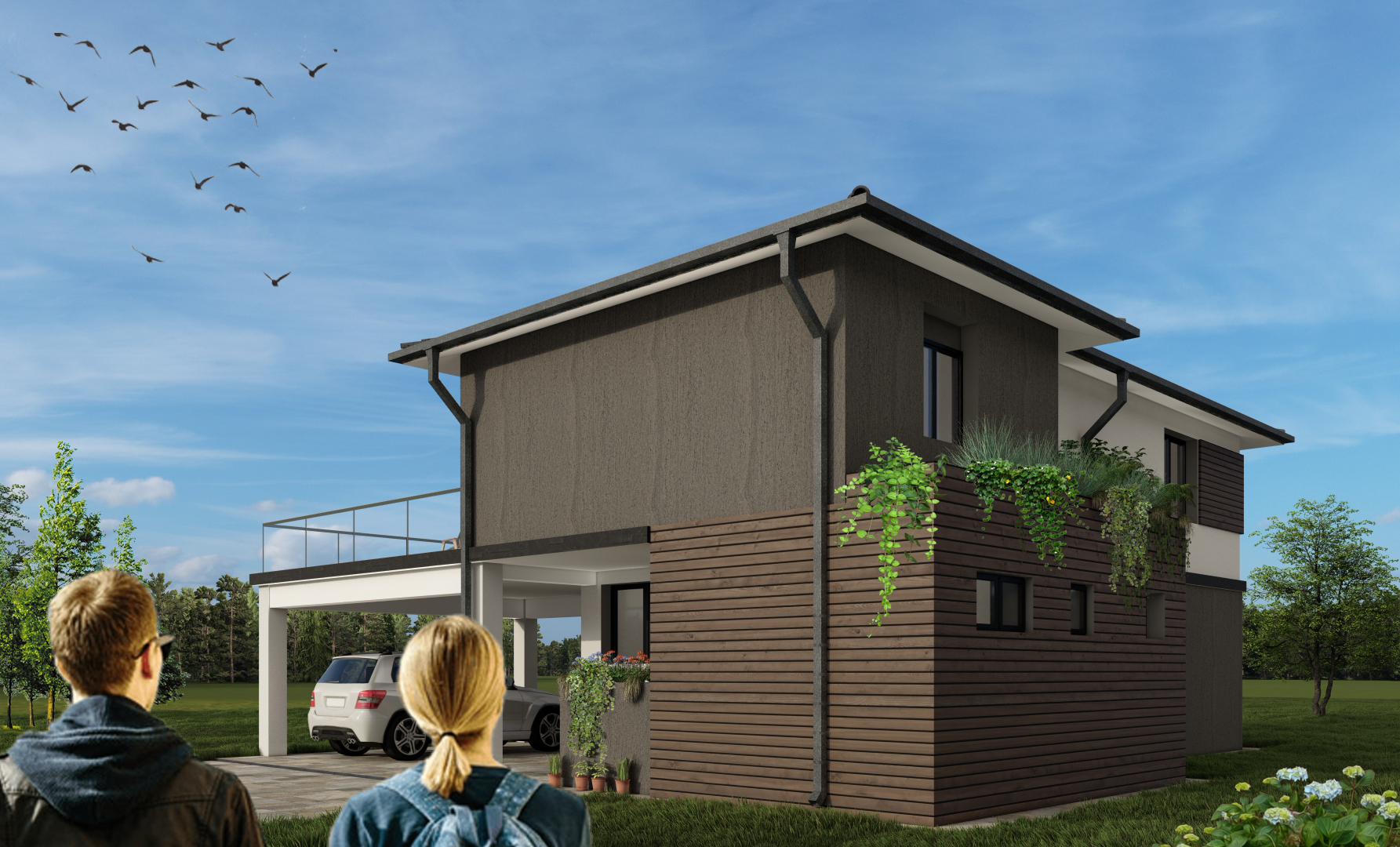 Vă prezentam o locuință cu două niveluri, destinată unei tinere familii care își dorește copii în viitor.