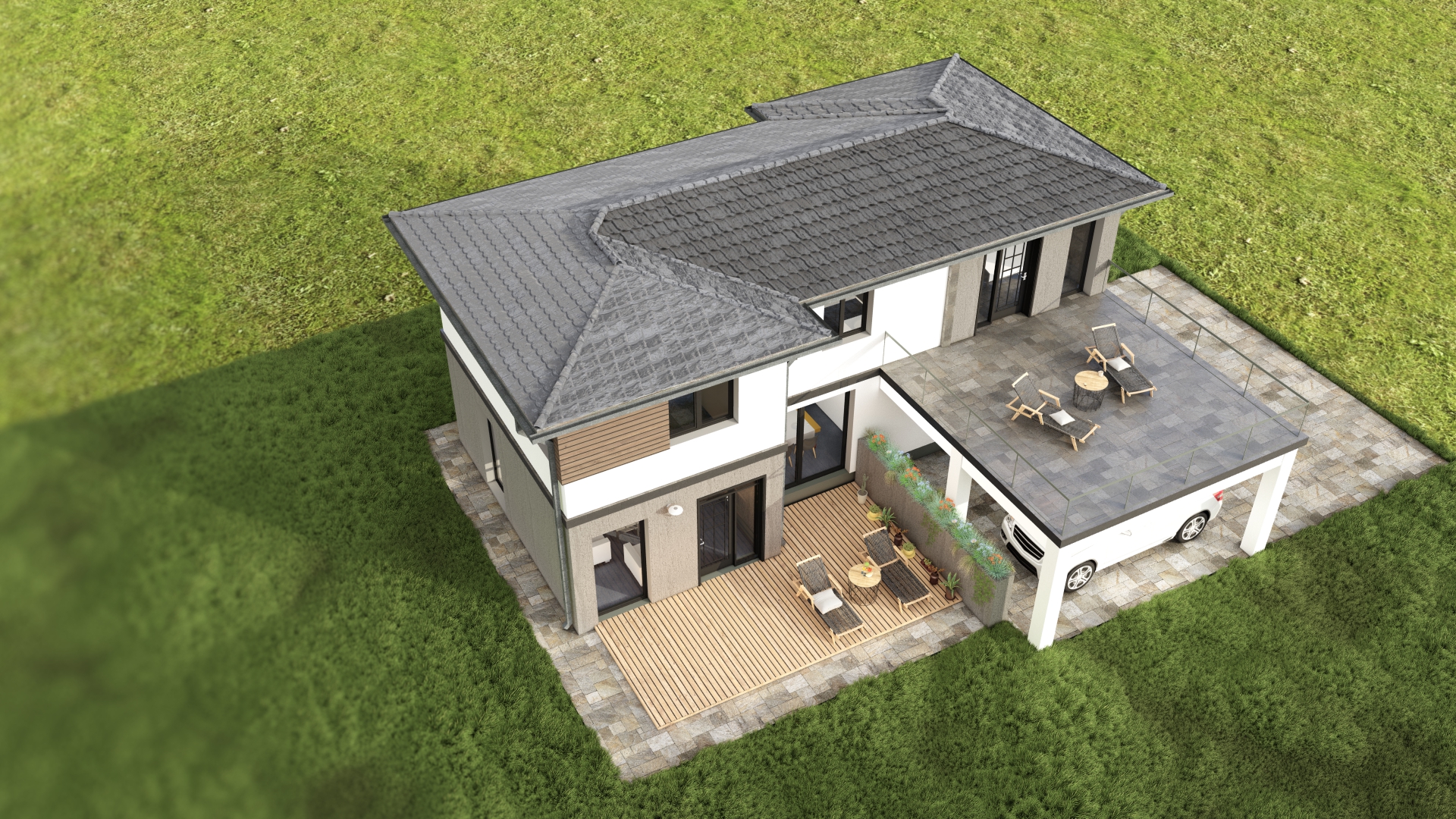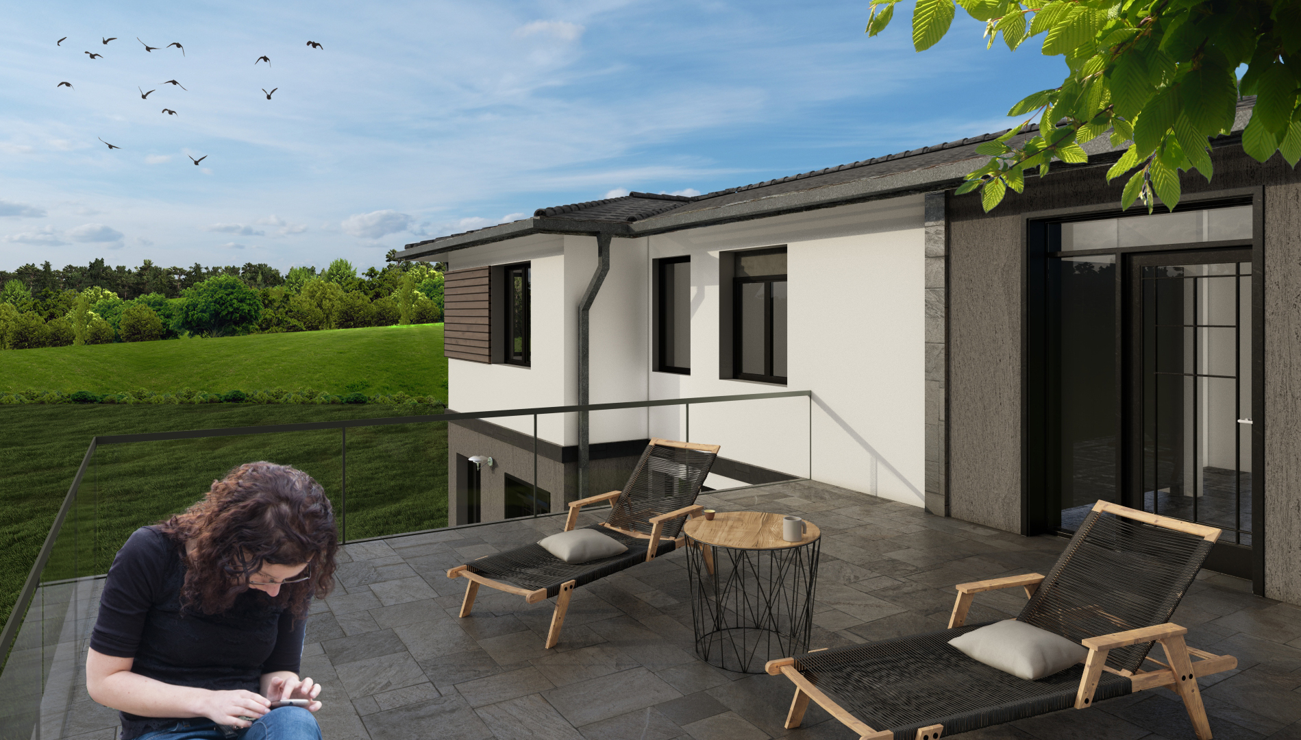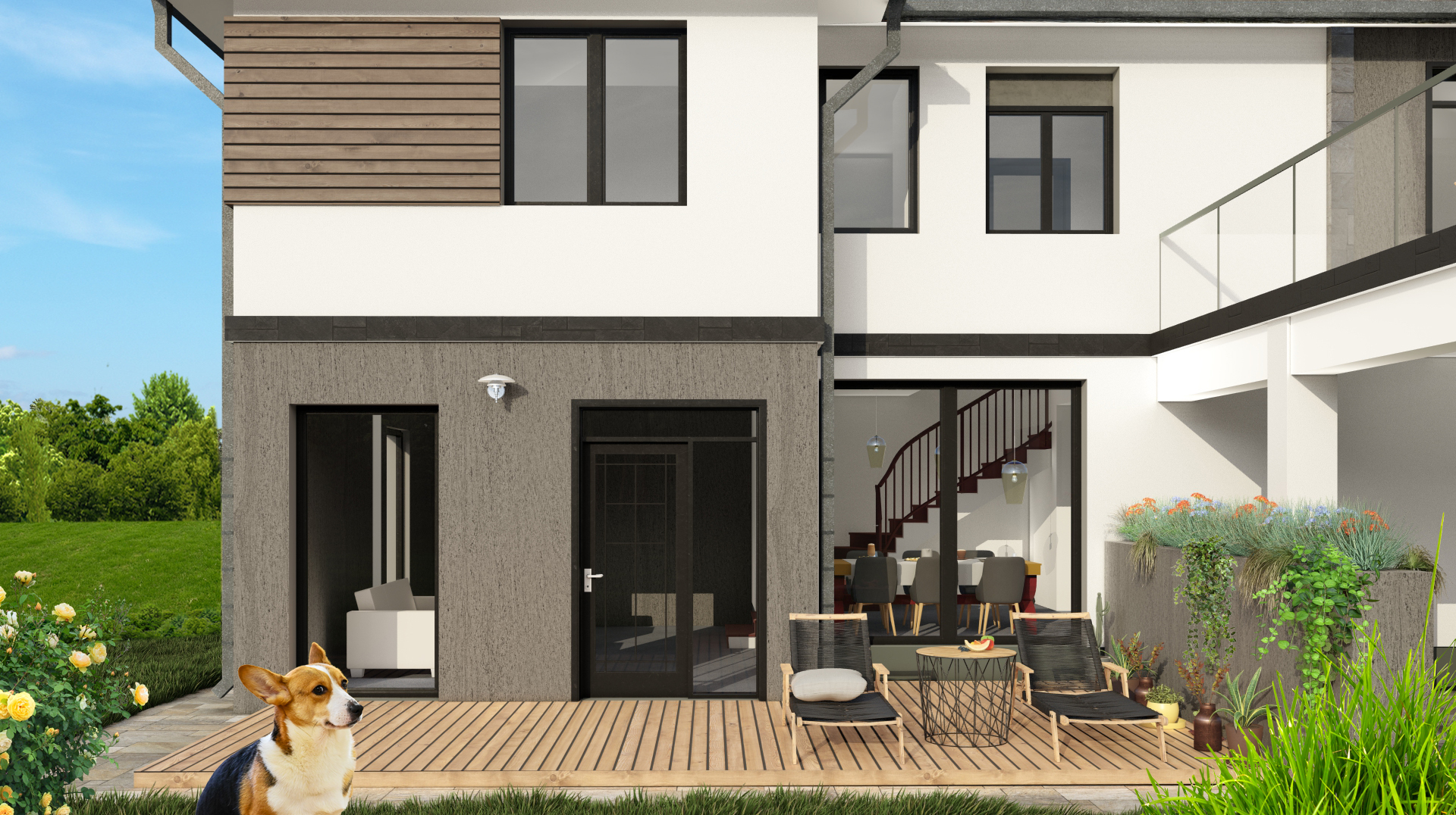 Spațiile generoase sunt potențate de amplasarea pe teren. Spațiile deservite ale parterului întrețin un dialog care creează un sentiment de delectare, de mulțumire, iar suita matrimonială a etajului devine o oază.